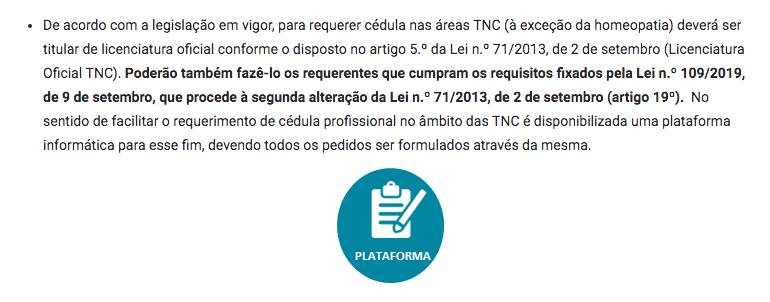Cédulas Profissionais após a promulgação e publicação da Lei 109/2019 em DR. No dia 9 Setembro de 2019, reabriram no dia seguinte novamente as candidaturas a cédula para todos os que concluíram ou venham a concluir a sua formação de Outubro de 2013 até 31 Dezembro de 2025, e que o façam até à saída do primeiro licenciado (em Acupunctura será até 2021 e em Medicina Tradicional Chinesa não existe previsão pois não existe ainda Licenciatura a funcionar).